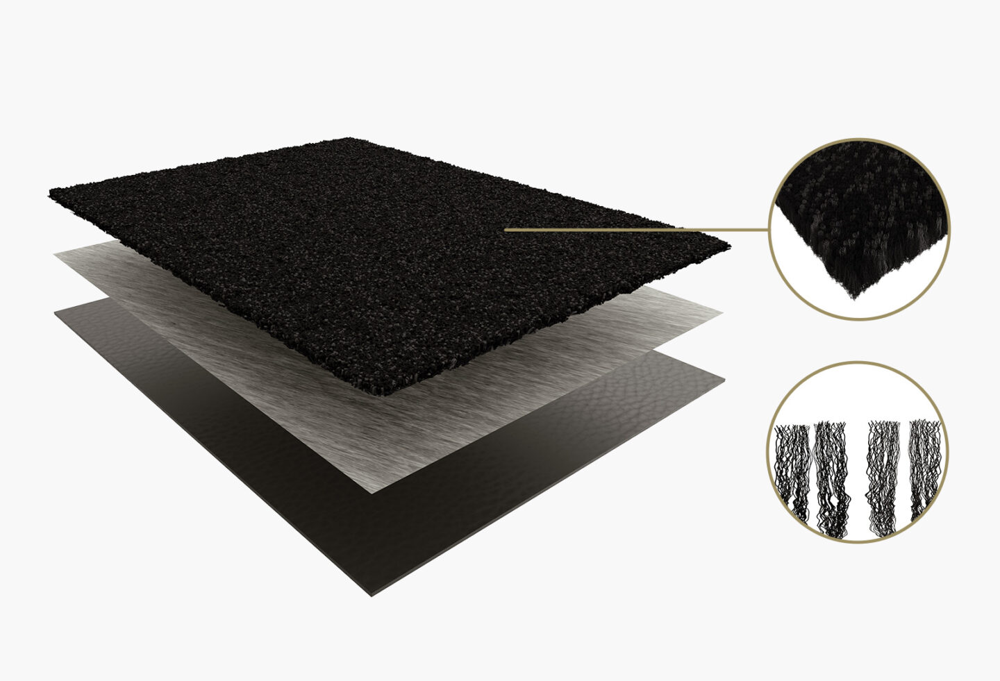 Onze matten maken we van Econyl-garen, gemaakt uit afgedankte materialen zoals oude visnetten. Unieke schraapvezels garanderen een vermogen van vuilopname dat je nergens anders tegenkomt. Door een compacte weving van harde en zachte vezels nemen onze matten extra veel vuil en vocht op en zijn ze zeer slijtvast. Zo zijn onze matten ook zeer geschikt als je vaak mensen over de vloer hebt.