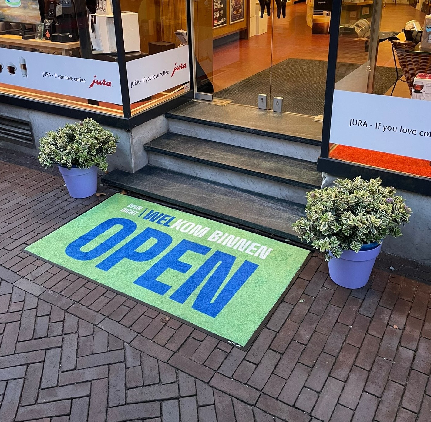Met een gepersonaliseerde deurmat van Mattador heb jij weer een zorg minder. Want op het moment dat jouw klant binnenkomt, heb jij de toon al gezet. Kies voor de juiste eerste indruk met een 100% gepersonaliseerde mat. Stel hem direct samen of neem contact op voor advies.